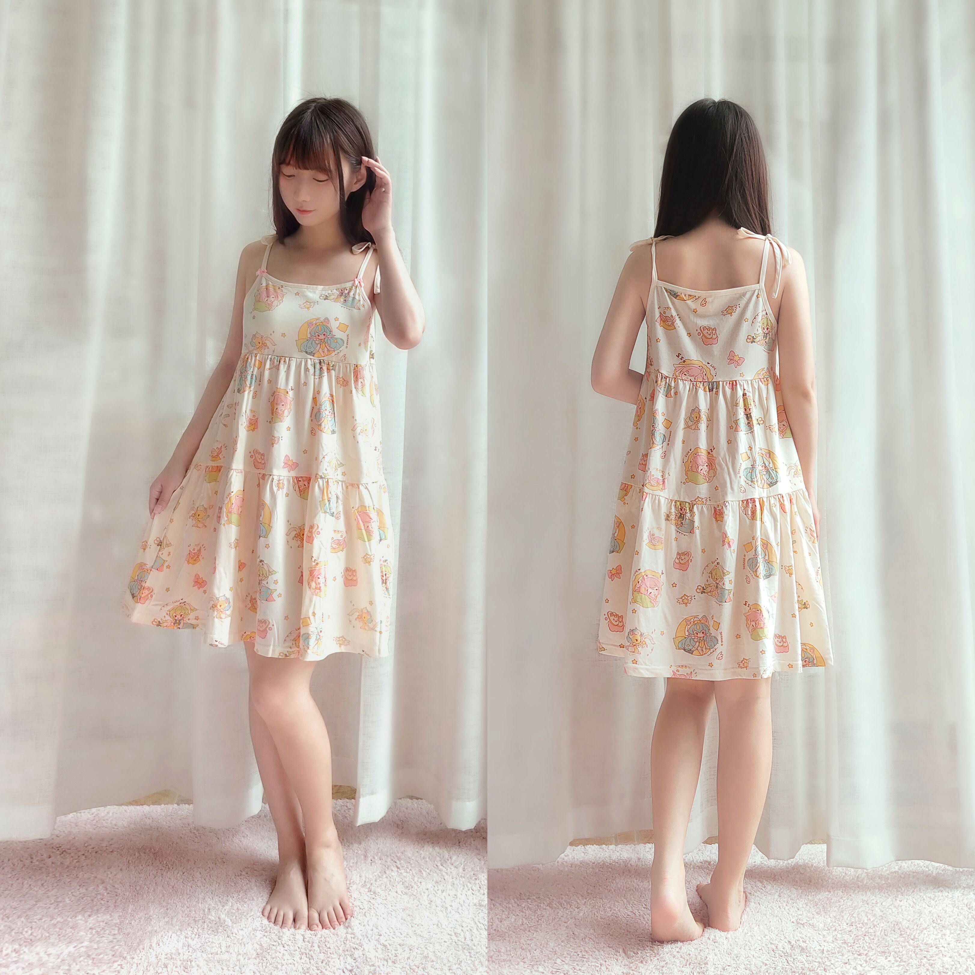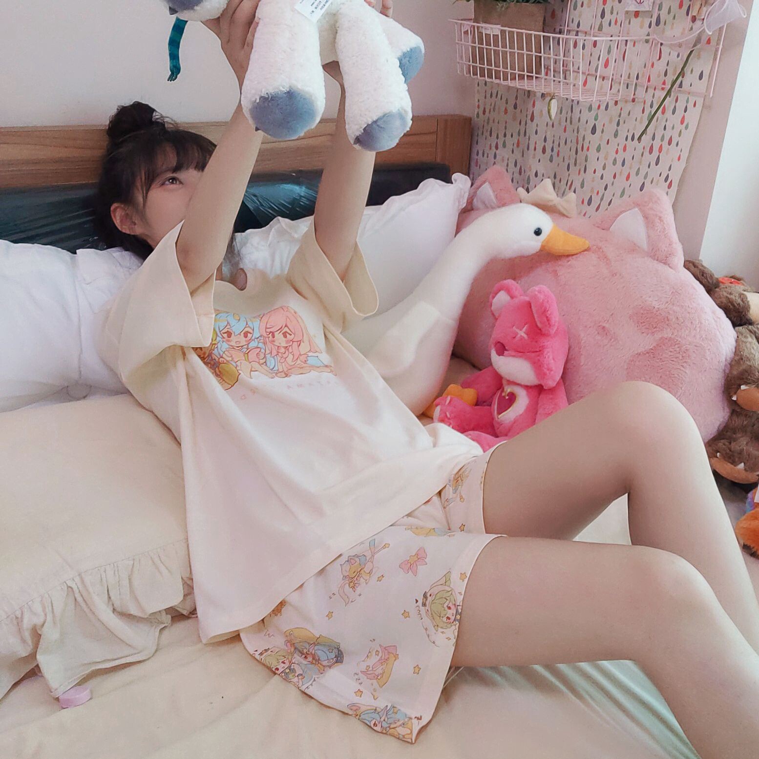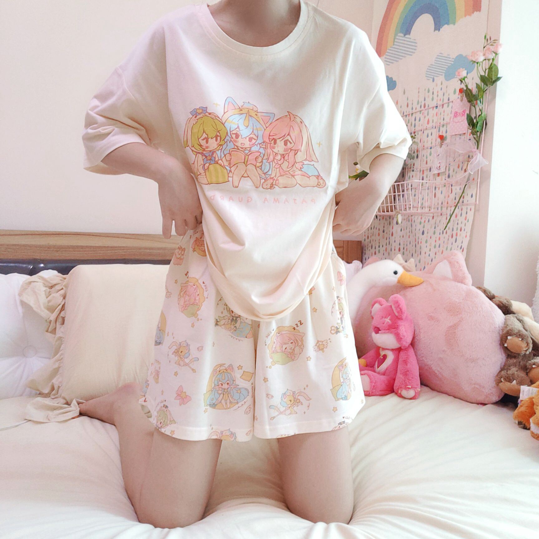 Pajama Guardian-Cotton Sweet Short Sleeve Shorts Homewear LOL Cute Print Summer Pajama Dress