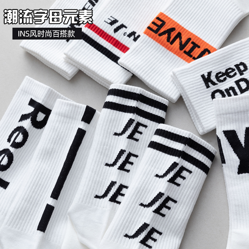 White Socks Male Summer Money Middle Cylinder Socks High Silo Pure Cotton All Cotton Deodorized Ins Tide Boys Stockings Basketball Socks Summer