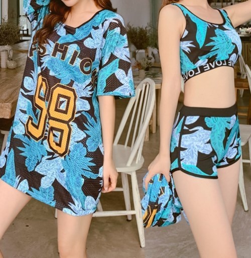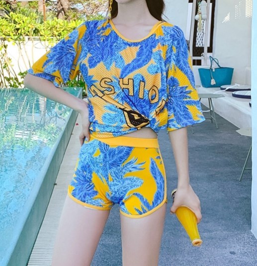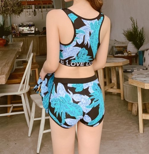Swimsuit female Xia Xianqi seaside three-piece conservative cover belly to show thin sports model student fat mm large size bubble swimming suit