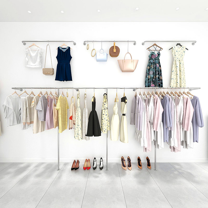 Men and women Clothing Shop Stainless Steel Wire Drawing Silver upper wall hanging clothes hanger Sub-rack shelves Positive Side Hanging