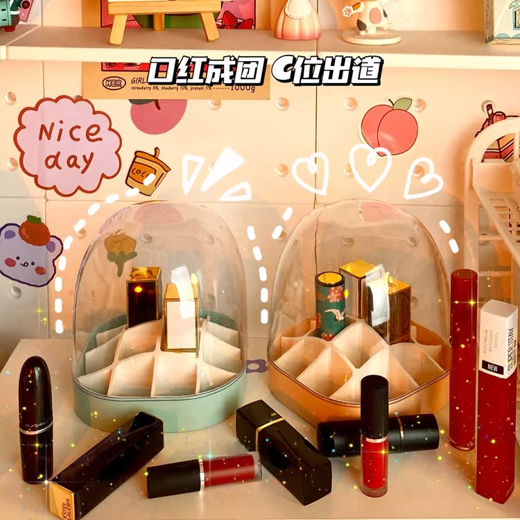 Lipstick storage box with lid dust-proof multi-grid transparent lipstick rack desktop net red large-capacity lip glaze box