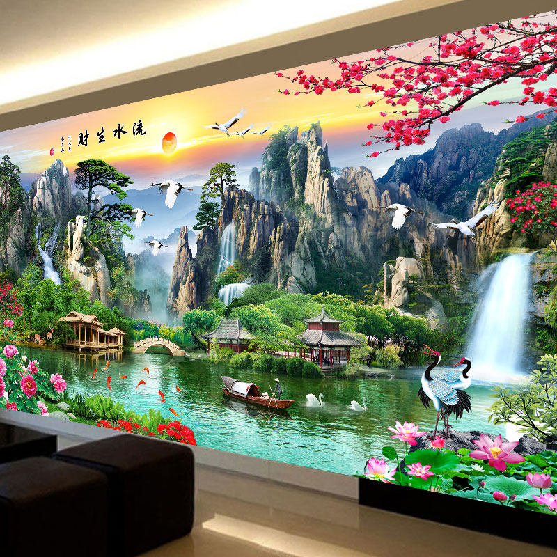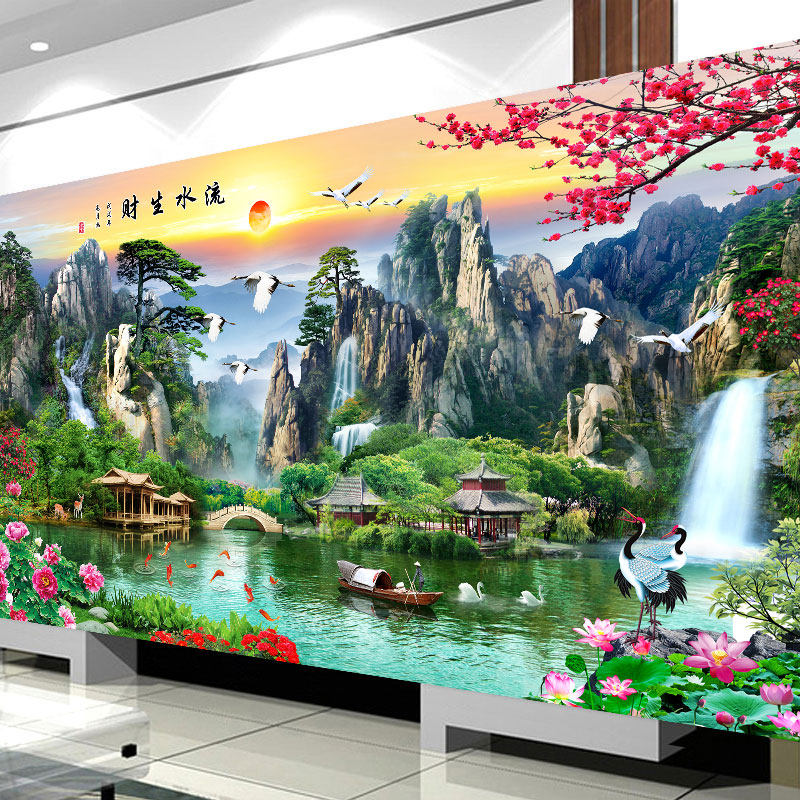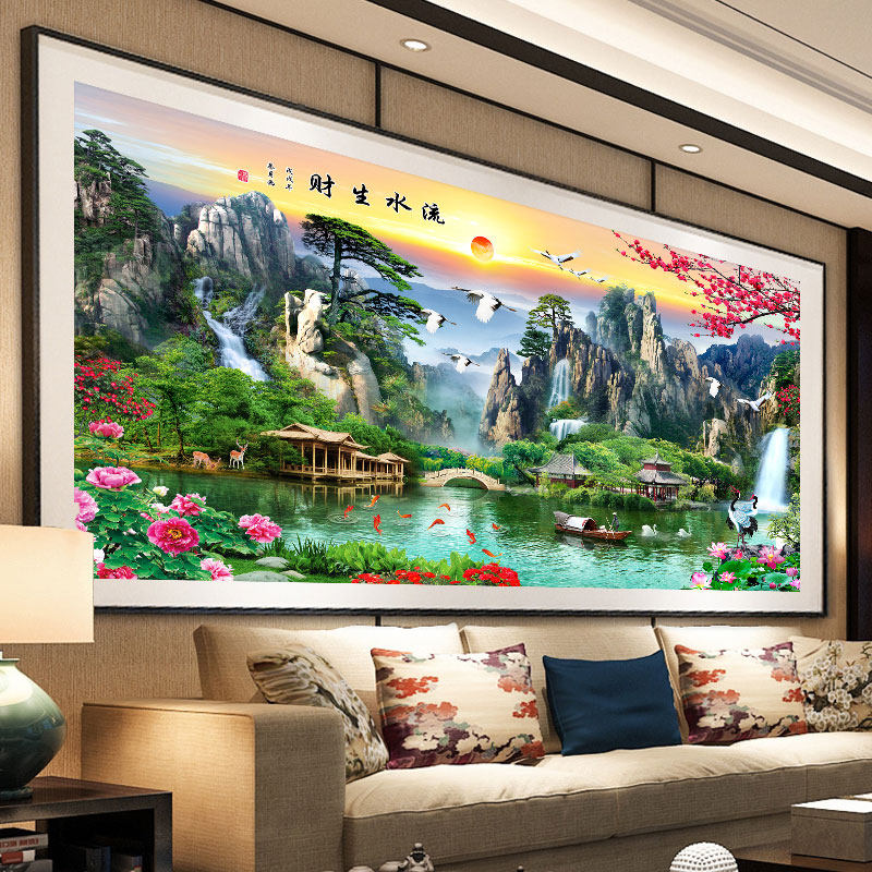 Cross-stitch 2023 new embroidery living room flowing water wealth hand embroidery landscape painting scenery welcoming pine atmosphere large