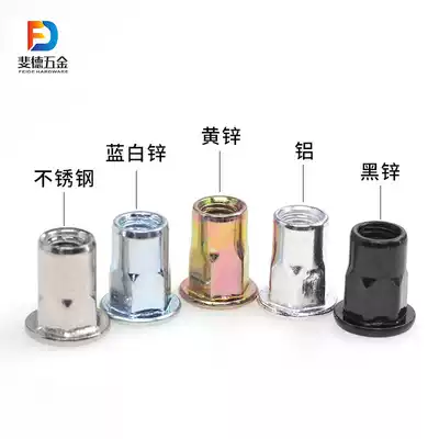 Large side half hexagon riveting nut flat head 304 stainless steel aluminum alloy yellow zinc blue white zinc black zinc M3-M12