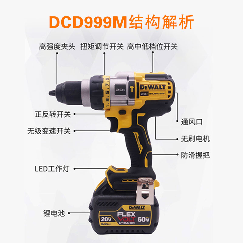 DeWalt DCD999 High Torque Three-Speed 996 Impact Drill 20V Brushless Hammer Drill Impact Drill Ice Drill