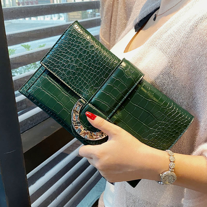 Tide brand 2021 new wave pattern metal ring crocodile pattern clutch bag shoulder messenger retro fashion women's bag
