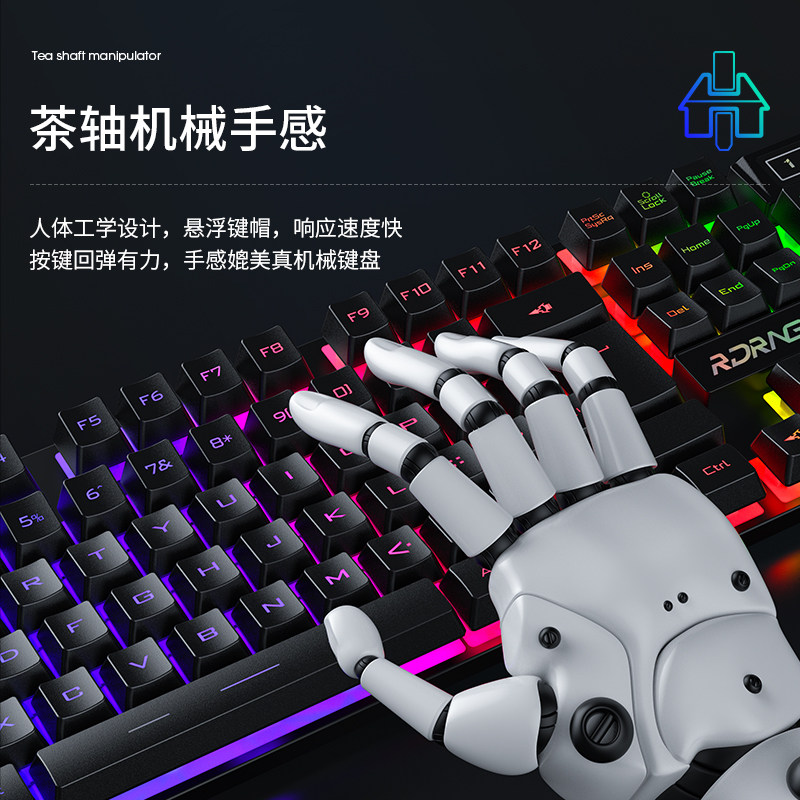 Cable keyboard mouse set robotic hands desktop laptop USB external office home game mute typed keyboard for Huawei Dell Lenovo Xiaomi