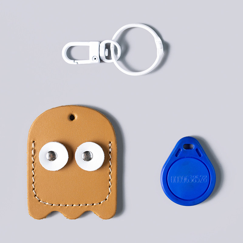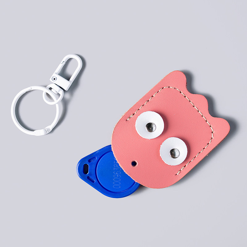 Head Layer Cow Leather Handmade Door Fasting of Cute Cartoon Genuine Leather Drop Shaped Community Elevator Card Protective Sleeve Key Clasp
