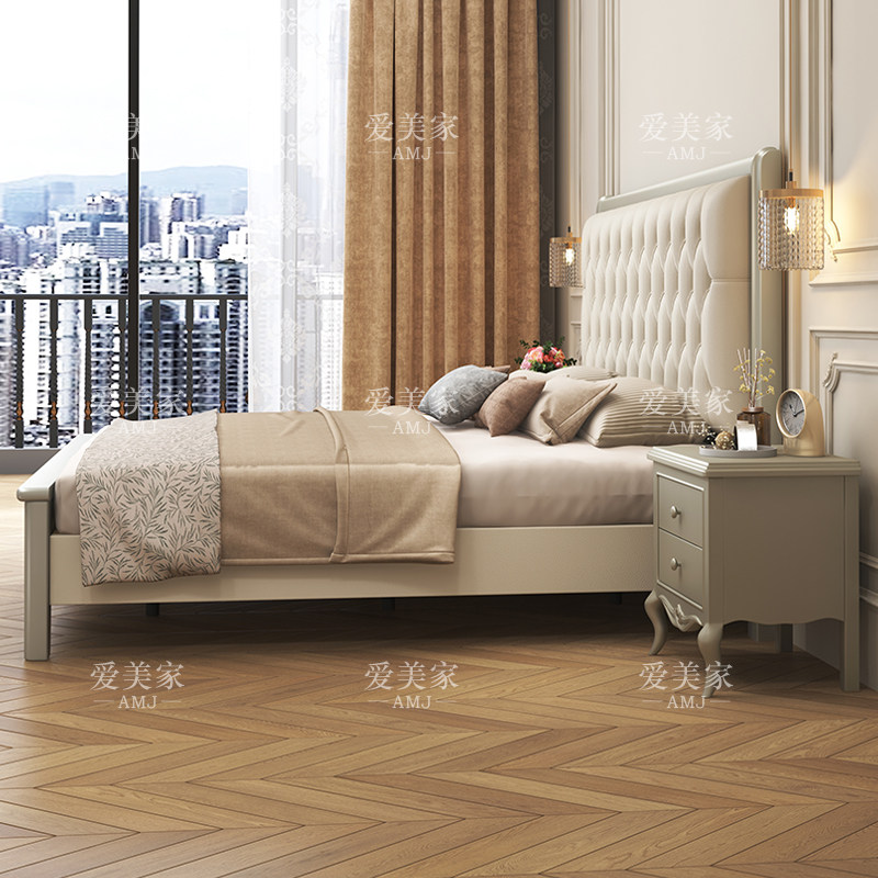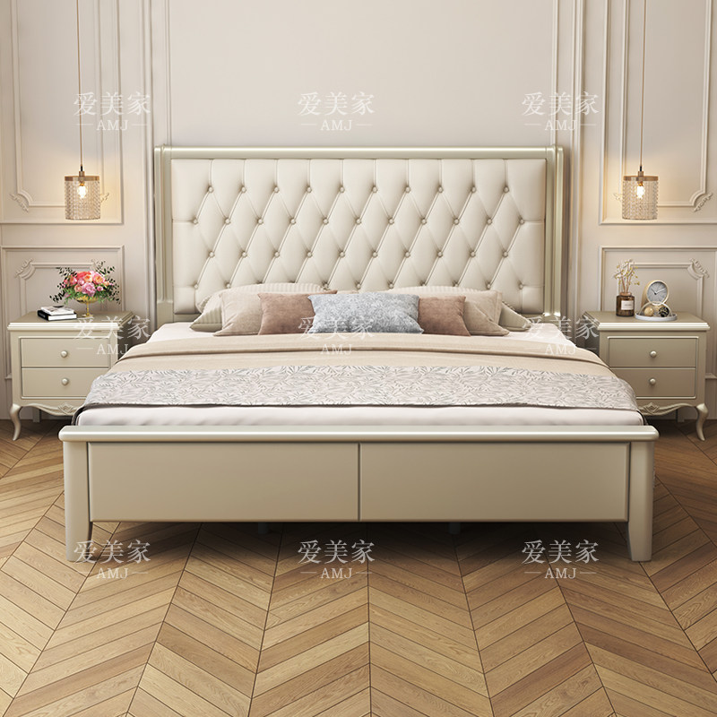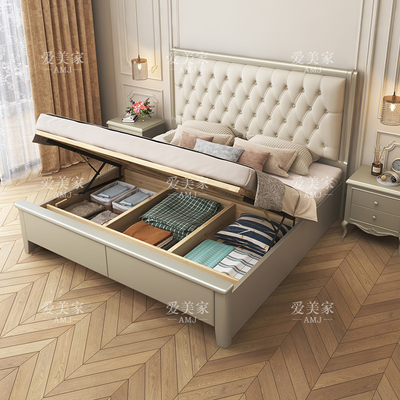 American light luxury solid wood bed 1 8 meters double bed master bedroom marriage bed modern minimalist French storage soft bed 1 5