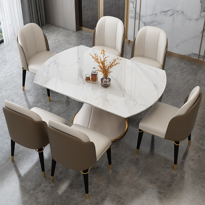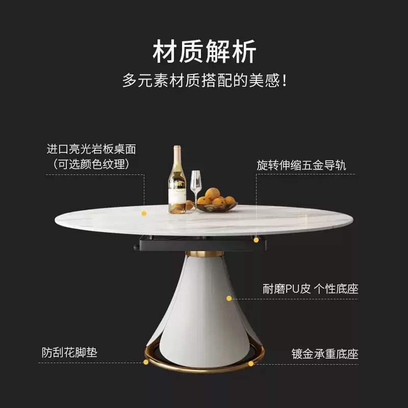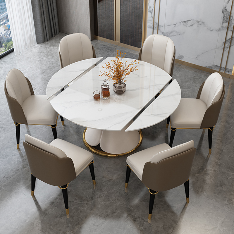 Home Small Household Type Multifunctional Dining Table Round Retractable Minima Light Lavish Imported Rock Plate Swivel Dining Table and chairs Combined-Taobao