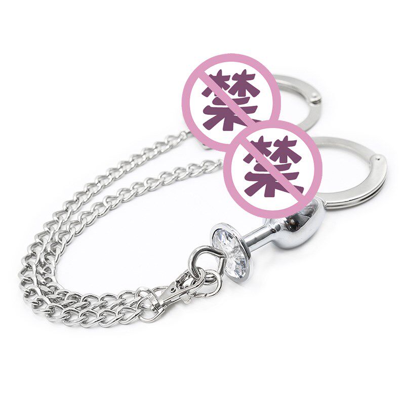 Lock chain with handcuffs hook to connect metal rear vestibule anal plug bow shaped back-back bundle bondage Erotic Supplies