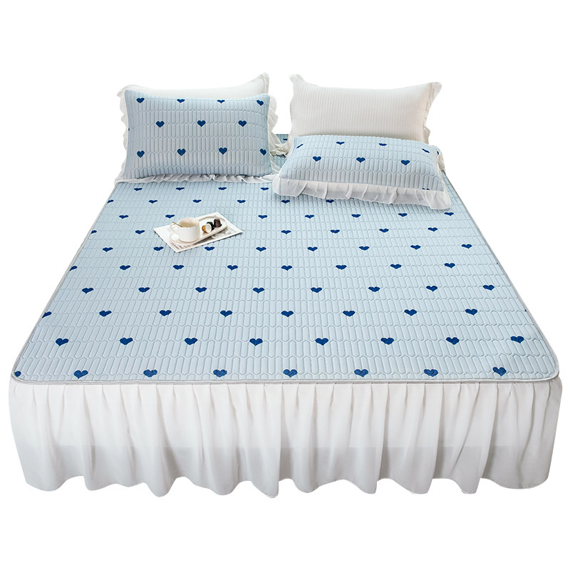 Bed skirt latex mat three-piece set machine washable folding ice silk mat 1 5 summer naked sleep air conditioning soft mat