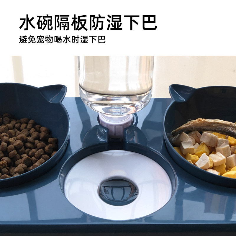 Dark blue (main food bowl snacks bowl water bowl) green (main food bowl snack bowl water bowl) pink (main food bowl snacks bowl water bowl) white (main food bowl snack bowl water bowl) (green hills)