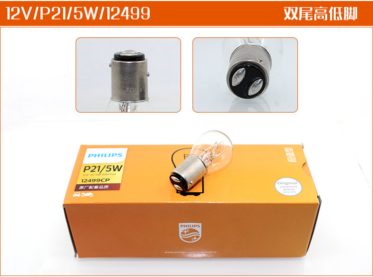 Philips car driving light brake bulb rear tail light double wire high and low feet 12V P21 5W 12499