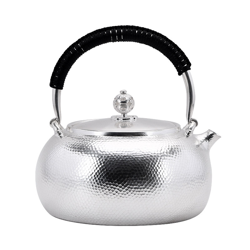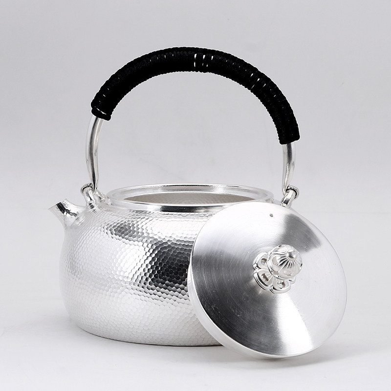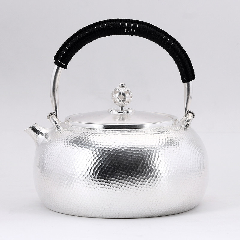 Tai'an silver industry pure silver 999 boiling water pot pure handmade hammer grain silver pot Chinese tea pot Kung fu tea furniture