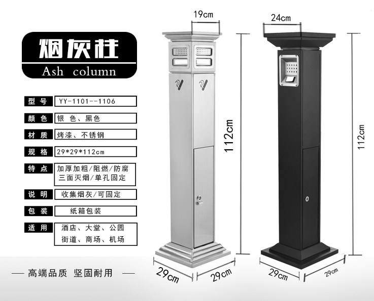 Stainless steel vertical ash column outdoor smoke extinguishing column hotel shopping mall smoking area cigarette butt column outdoor ash trash can - Taobao