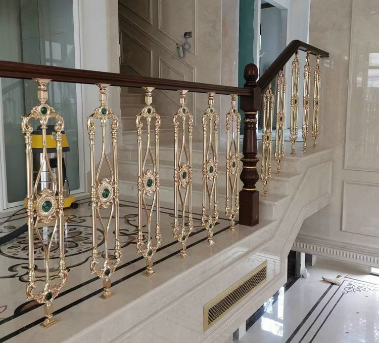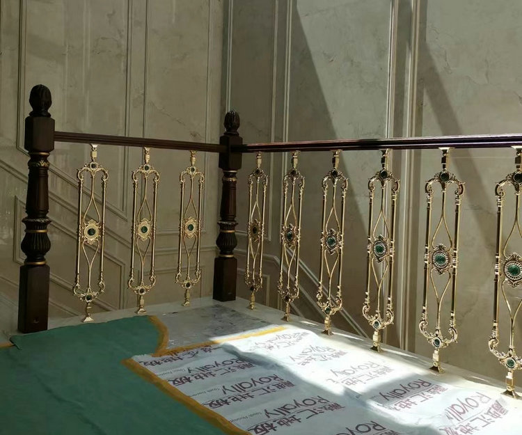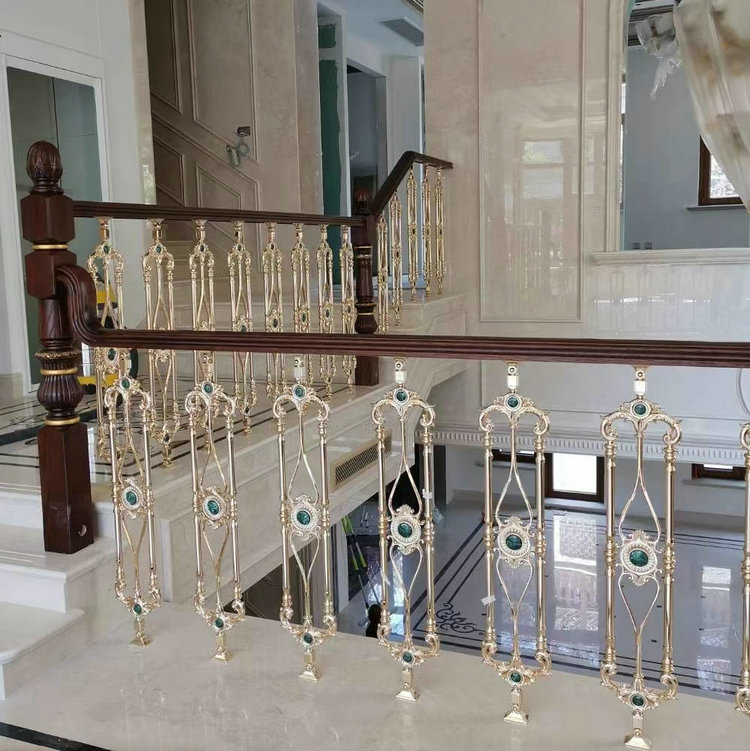 Ningbo Customized Stairway Armrest Enclosure Guard Railing Bronze Aluminum Column Iron Art Solid Wood Glass Villa installed boutique specialties