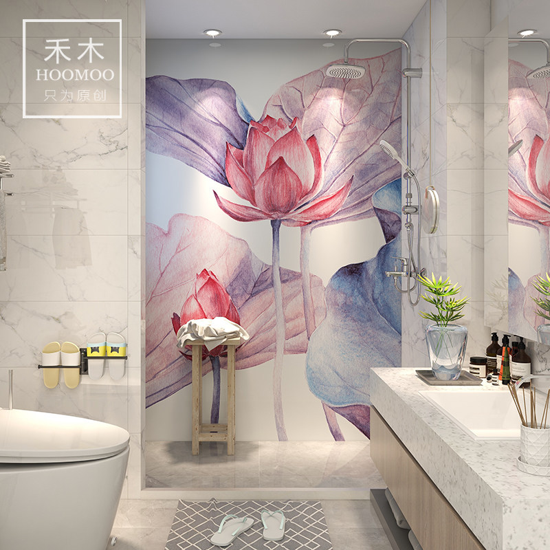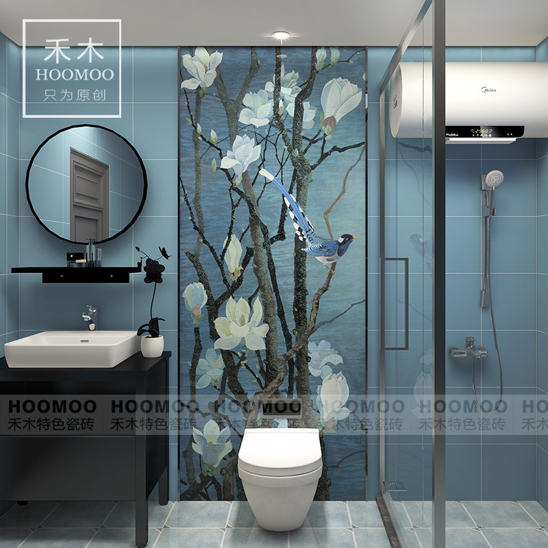Hemu New Chinese style powder room bathroom flower piece balcony porch wall brick living room toilet background tile customization