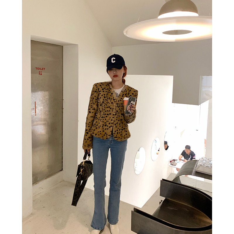Yuanyi Fried Street BAO WEN Rabbit Fur Coat Female Fur One Short V-neck 2021 New Young Style