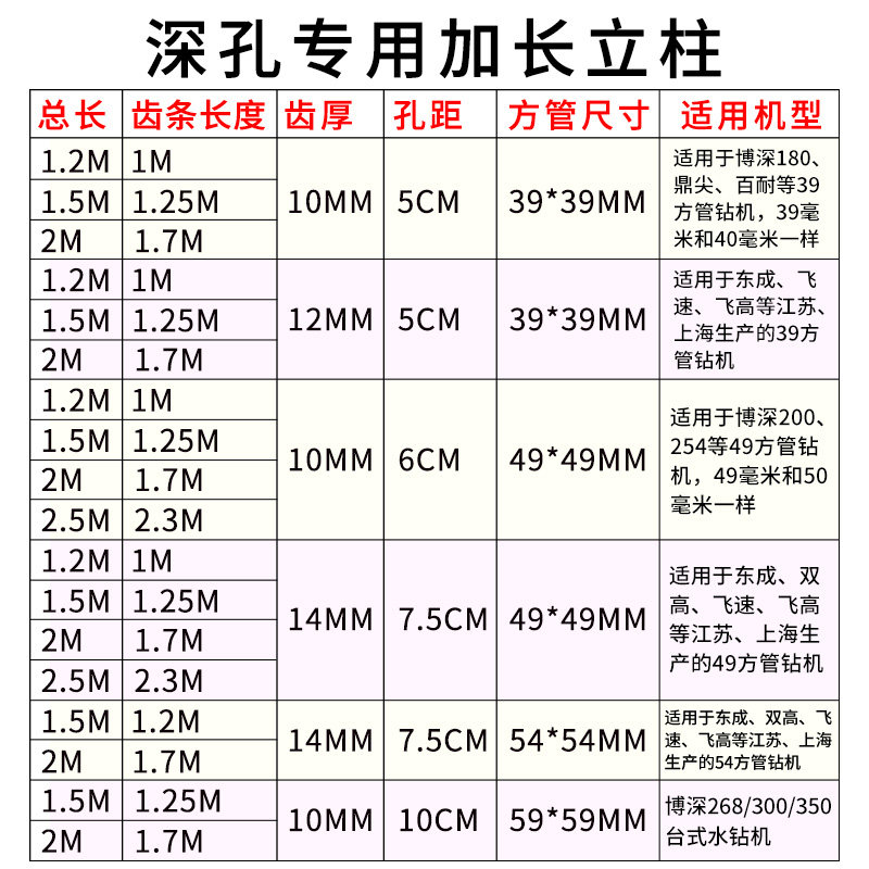 39 column tooth height 10 length 1 2 meters 39 column tooth height 10 length 1 5 meters 39 column tooth height 10 length 2 meters 49 column tooth height 10 length 1 2 meters