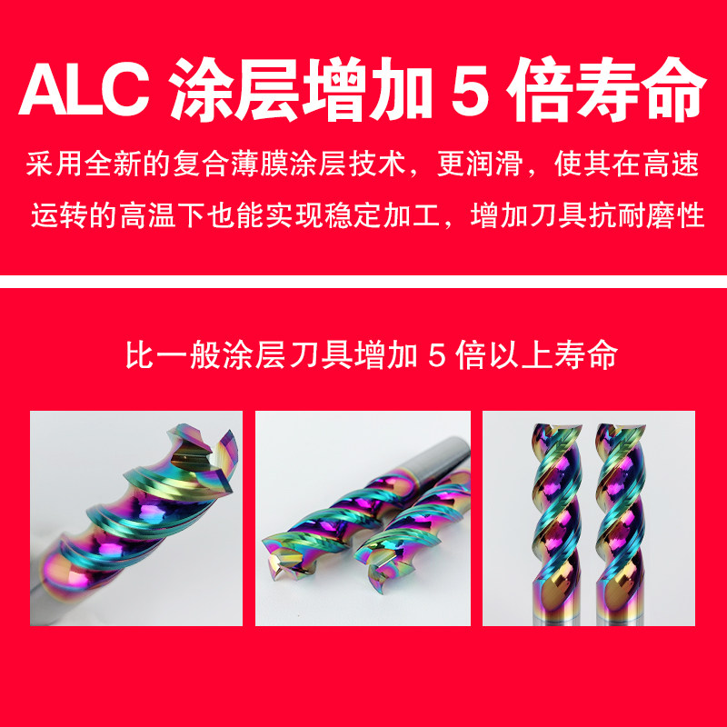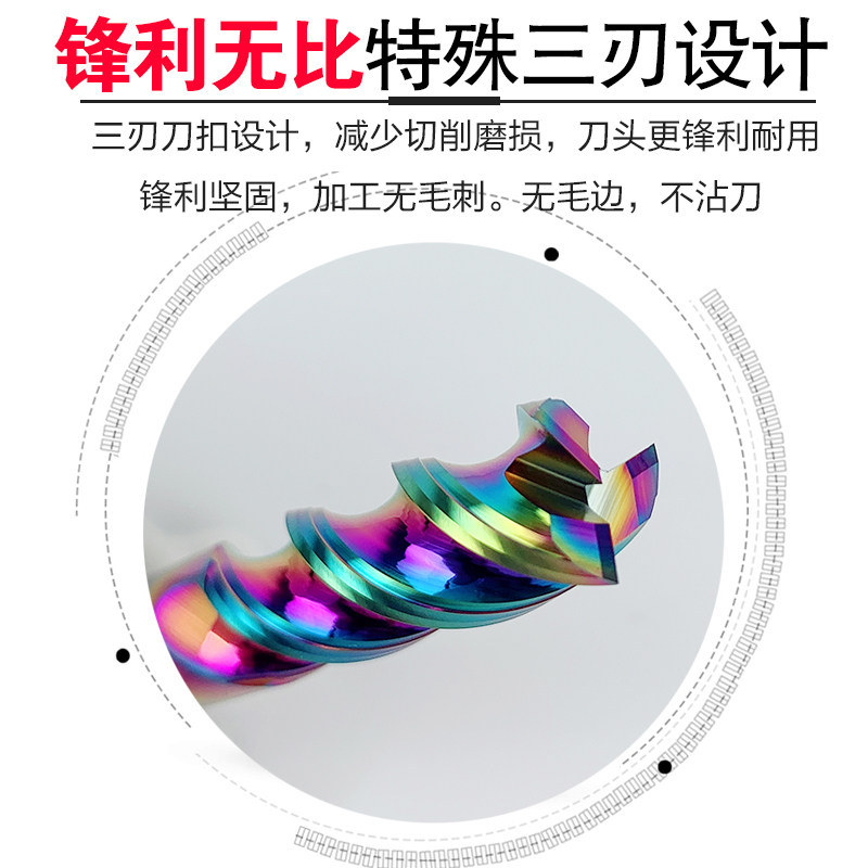Seven-color 65-degree tungsten steel aluminium with milling cutter 3-edge high light and efficient alloy vertical milling cutter lengthened U-groove CNC three-edge milling