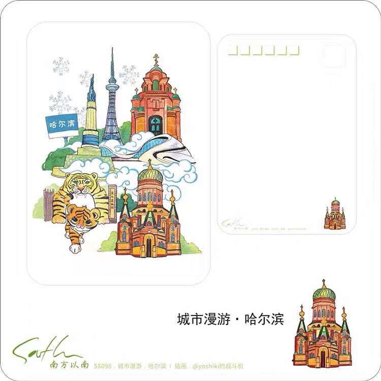 Heilongjiang Postcard Combination (4 Zhang) Heilongjiang Architectural Geography City Roaming Harbin My City Harbin eats the World Harbin