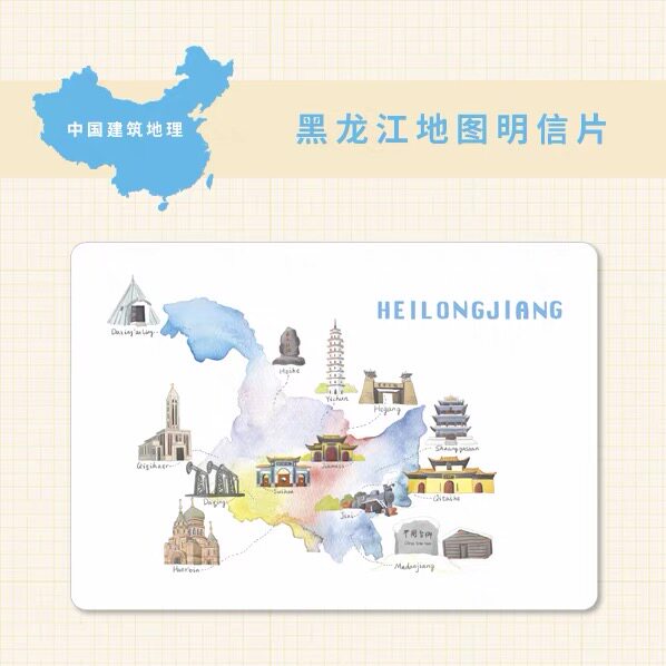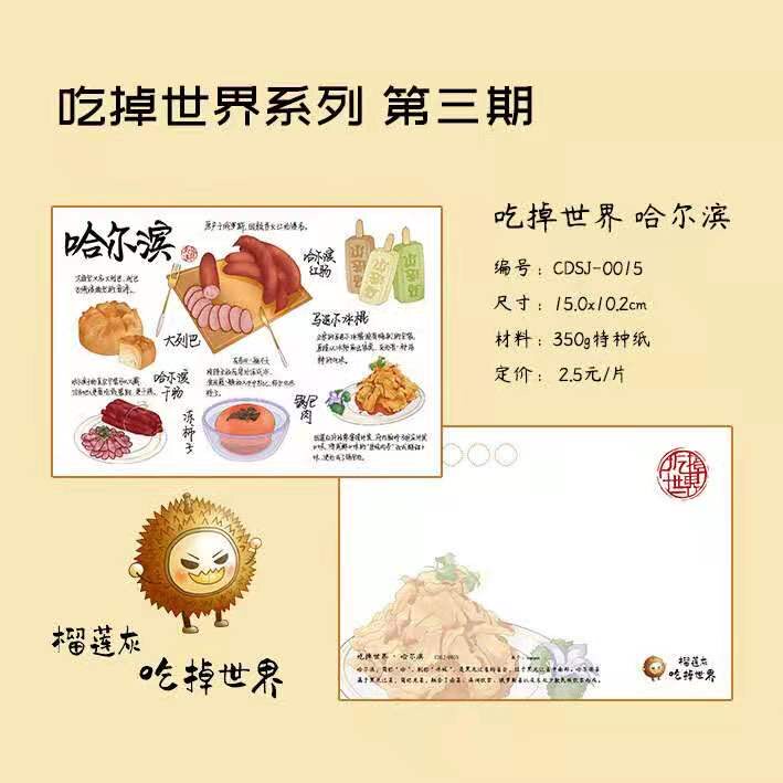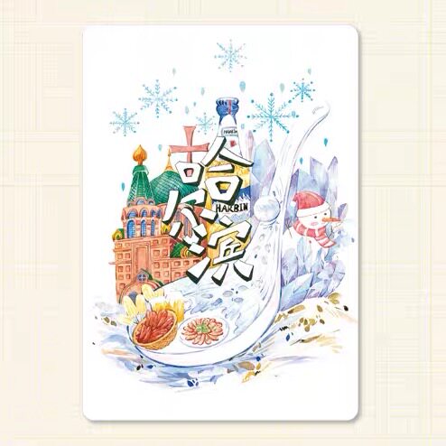 Heilongjiang Postcard Harbin City Roaming Food Map for Architectural Geography Creative Travel Commemorative Greeting Cards