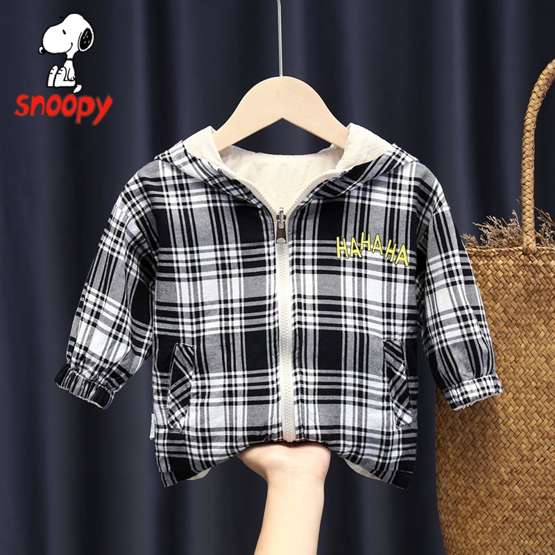 snoopy Snoopy boy autumn coat Children spring and autumn children wear plaid jackets on both sides of the baby trench coat
