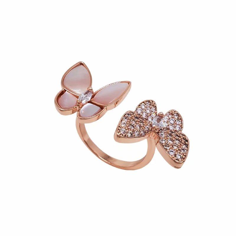 Pure silver plated platinum double butterfly ring 18k white gold color double butterfly ring 18k gold color double butterfly ring 18k rose gold double butterfly ring