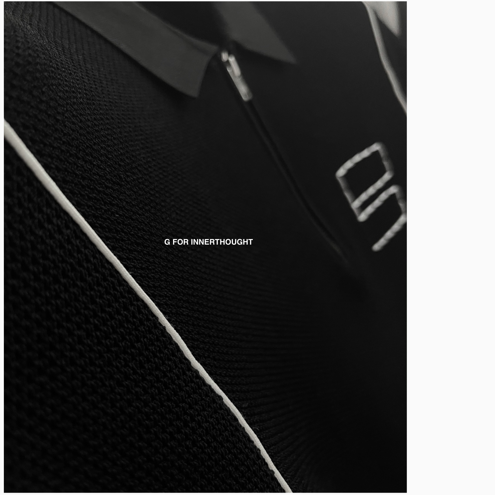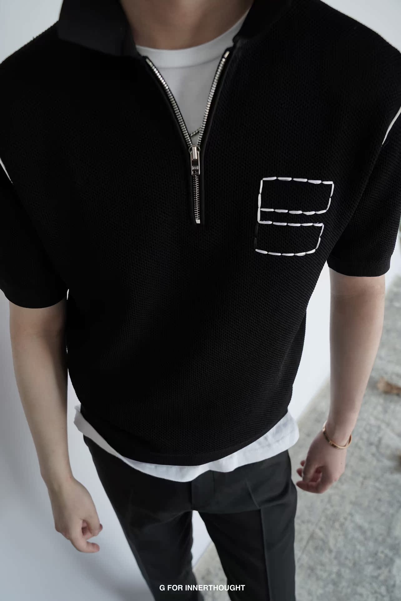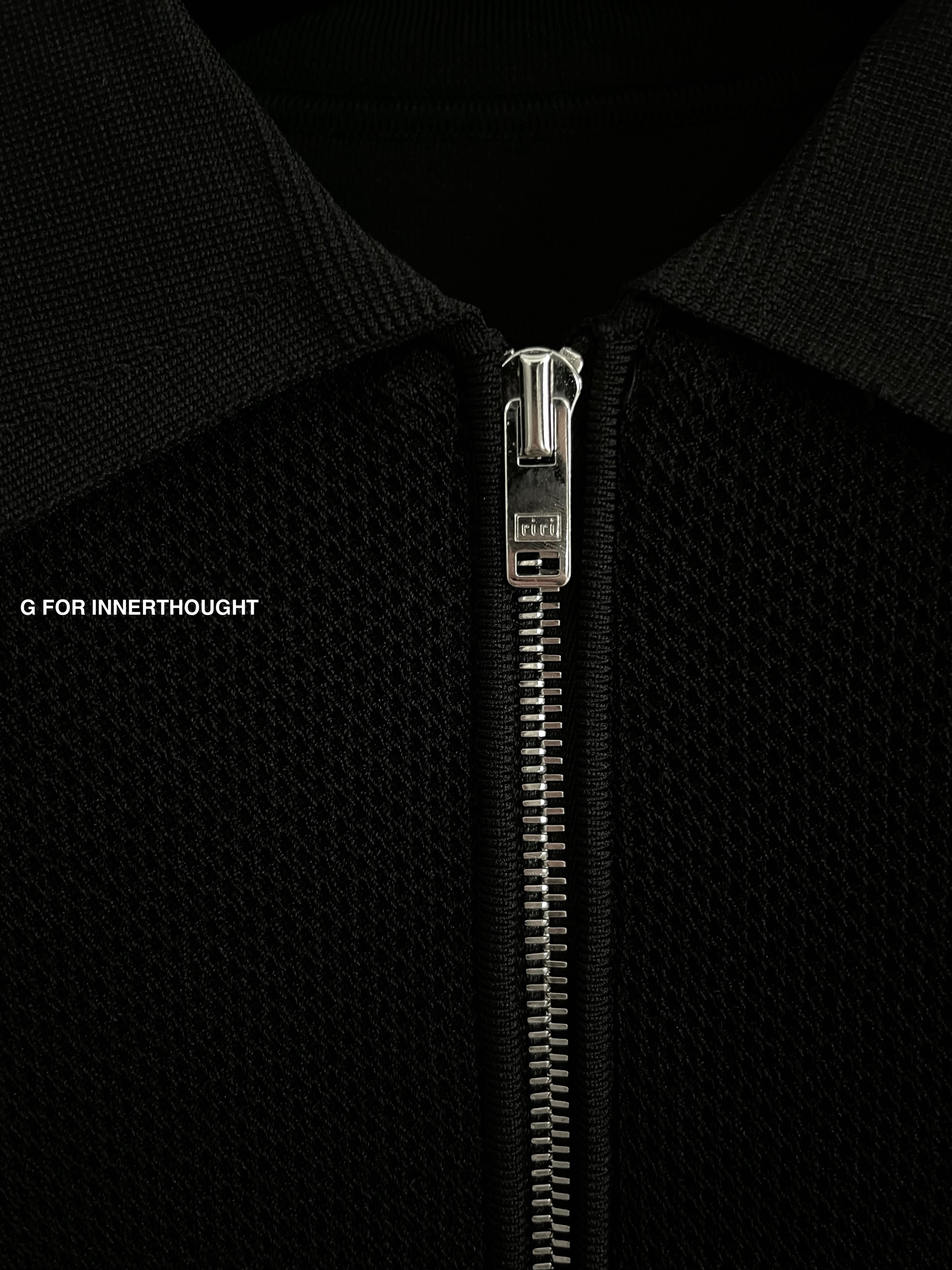 G FOR INNERTHOUGHT summer black lapel riri zipper T-shirt knitted short sleeves