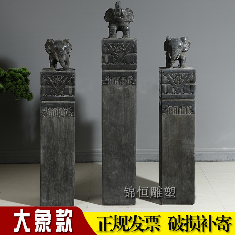 Stone carving tying horse pile elephant stone pillar bluestone antique courtyard indoor Chinese decoration ornaments tying horse stone lucky stone elephant
