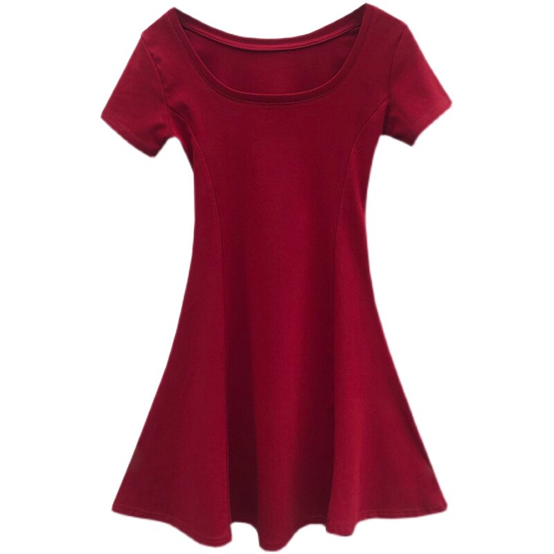 Nightclub U-neck low-cut sexy wine red dress summer little man A character slim waist skirt women's short sleeve skirt