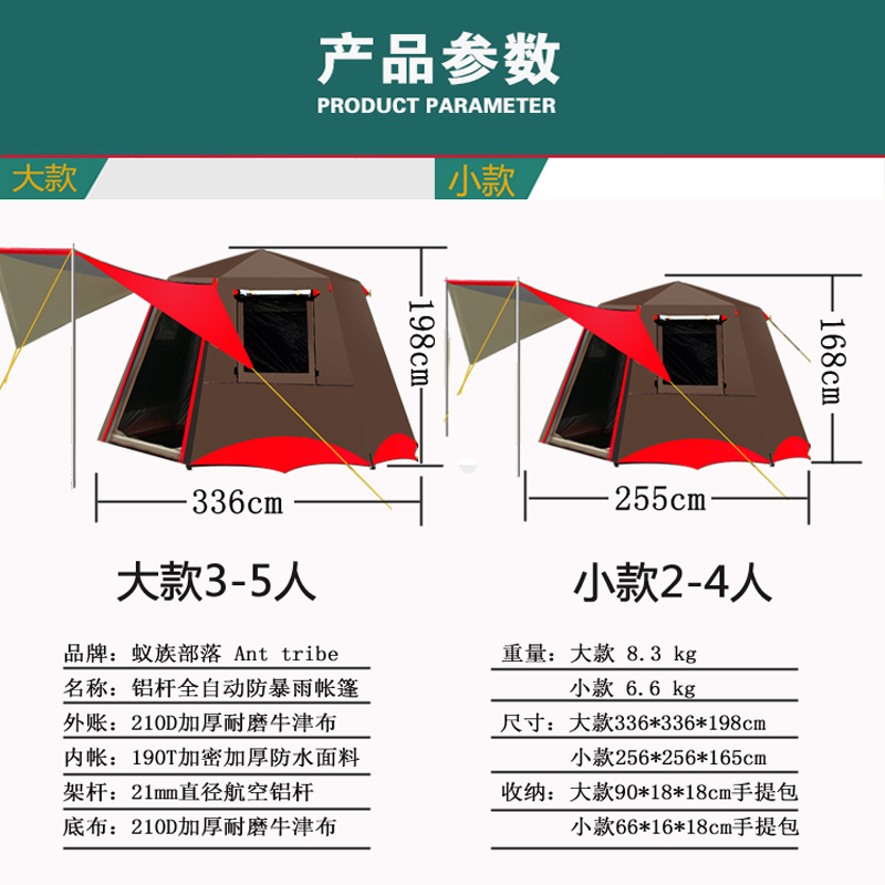 Dark green with orange (2-4)Person Brown with orange(2-4)Person Dark green with orange(5-8)Person Brown with red (5-8)Person Dark green with orange 2-4 person package 1 All aluminum