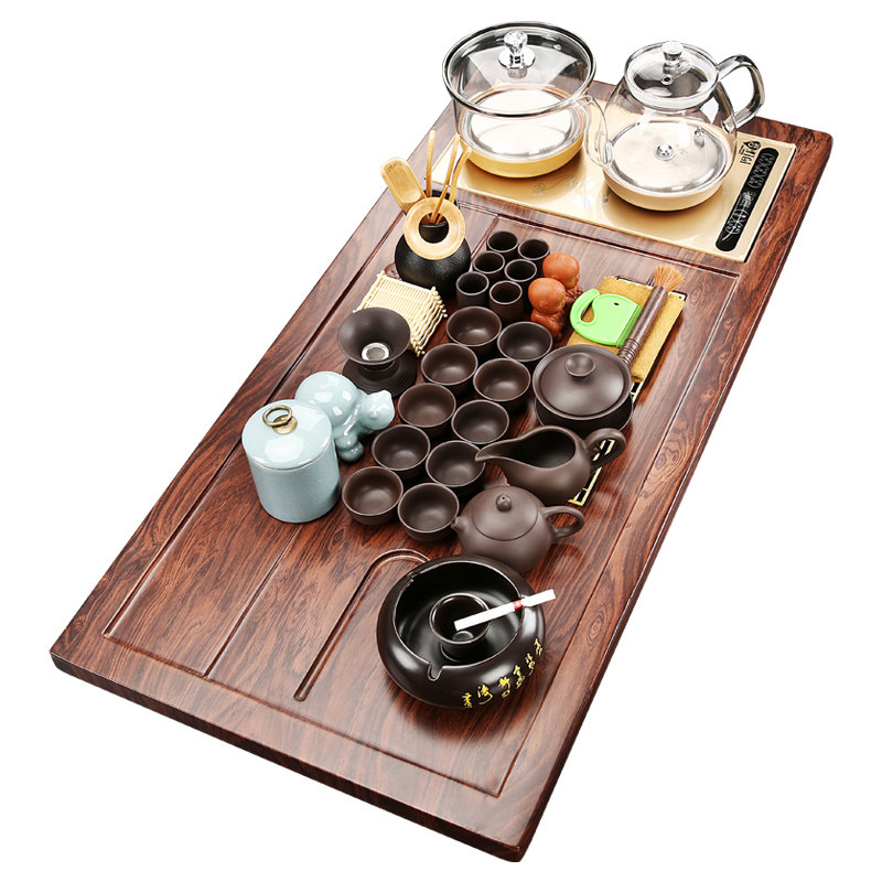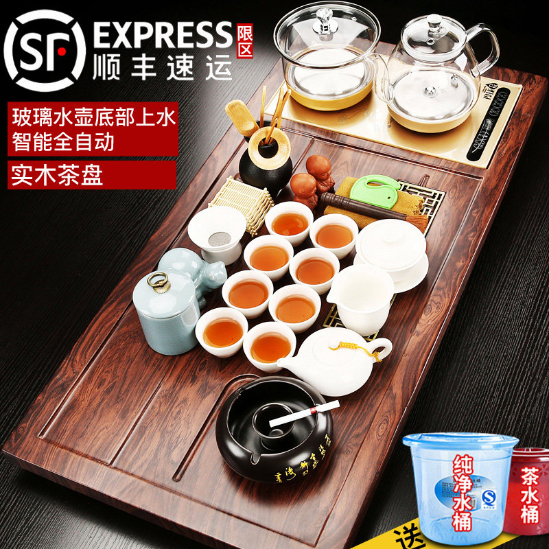 Könde Household Purple Sand Kongfu Tea Suit Glass Bottom Water Full Automatic Induction Cookware Integrated Solid Wood Tea Tray-Taobao
