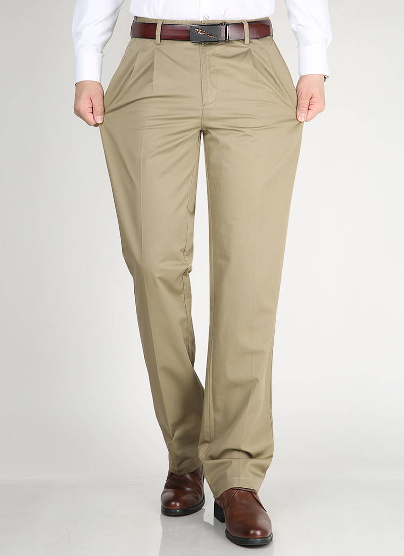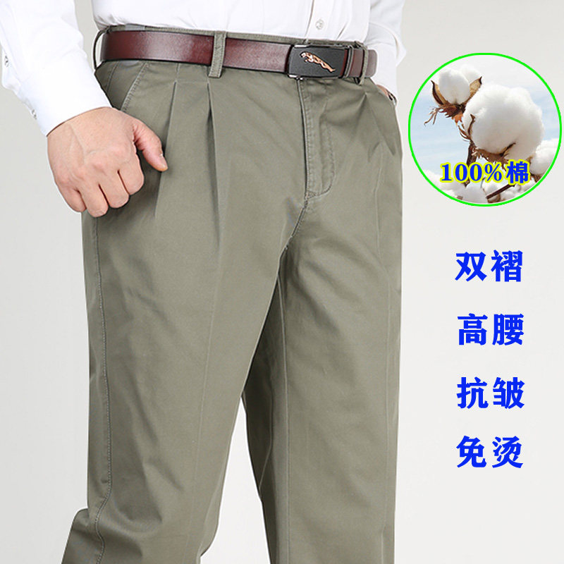 Cotton Double Pleated High Waist Loose Men's Pants Summer Thin Men's Casual Trousers Dad Free Ironing Pants Middle-aged and Elderly