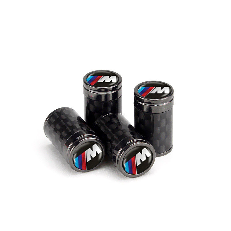 Carbon fiber titanium black - BMW blue and white label (4 pieces) Carbon fiber black silver - BMW blue and white label (4 pieces) Carbon fiber titanium black - BMW black and white label (4 pieces) Carbon fiber black and silver - BMW black and white label (4 pieces) Carbon fiber titanium black