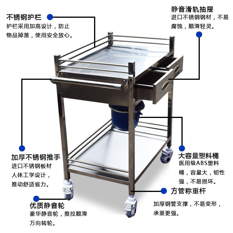 Medical thickened 304 stainless steel treatment car nurse changing medicine and delivering medicine nursing care-free integrated equipment trolley