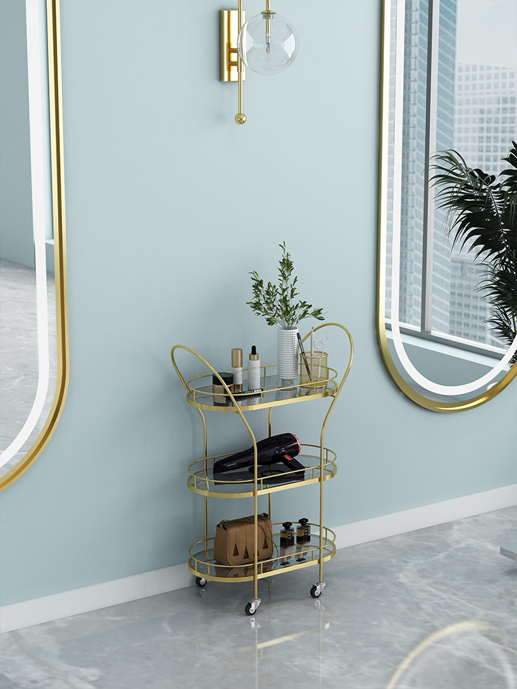 Light luxury beauty salon trolley Hair salon hot dye cart Hair salon Tempered gray glass storage supplies tool car