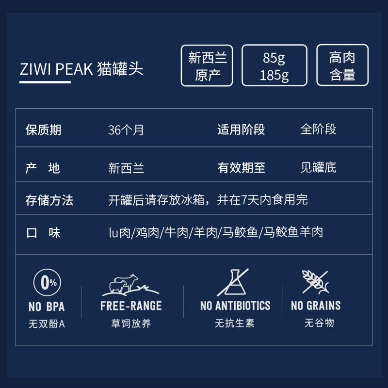 Ziyi peak canned cat ziwi into a kitten staple food can New Zealand imported grain-free beef chicken 85g 185g