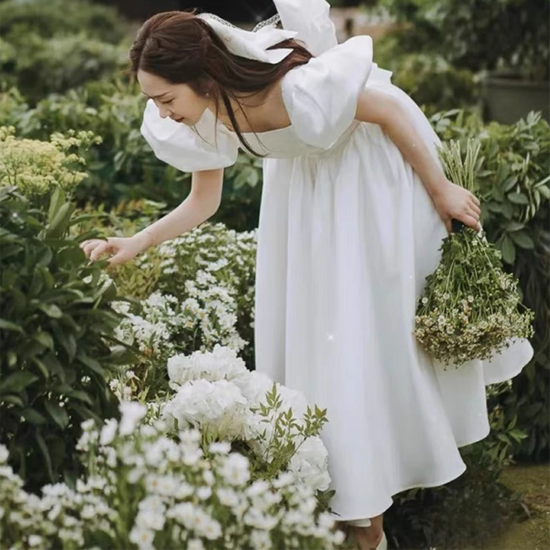 Fataway satin light wedding dress white minimalist daily out-of-the-fairy dreamlike temperament slim wedding registration gown