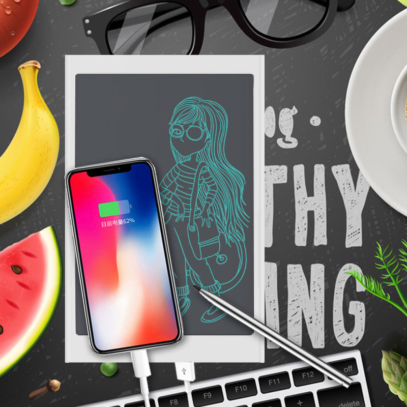 Mobile power supply with handwriting board wireless charging treasure fast charging portable large capacity 8000 mAh suitable for Huawei Apple