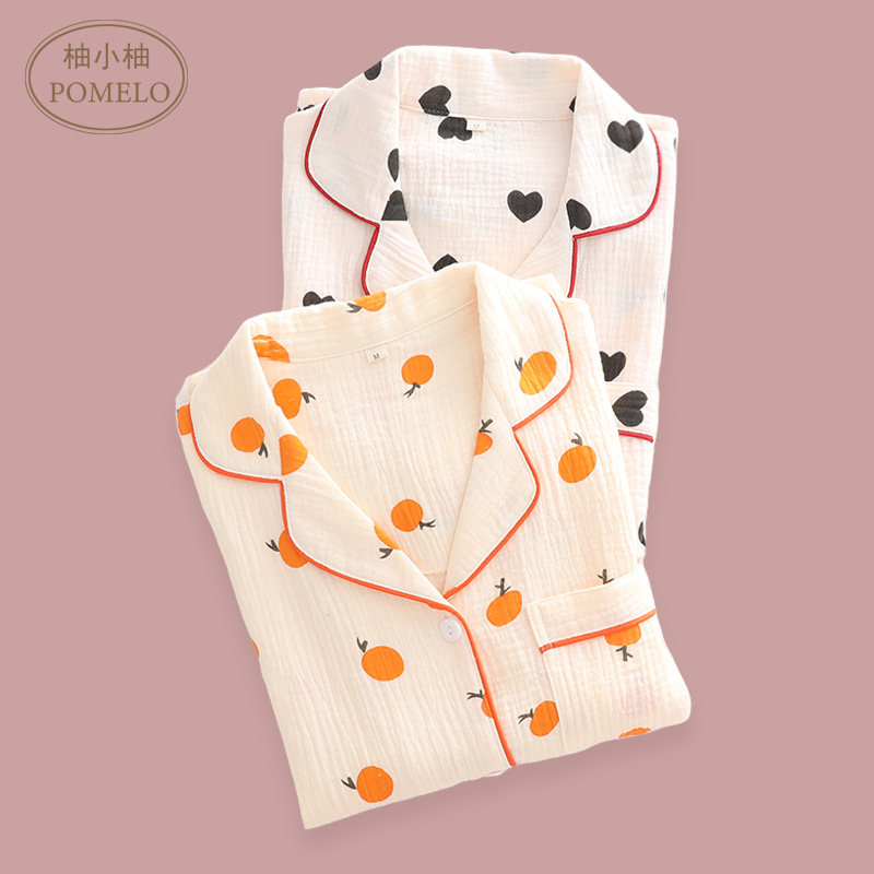 Summer thin cotton gauze in wind Japanese Yuan orange whole cotton home short sleeve shorts suit household clothes