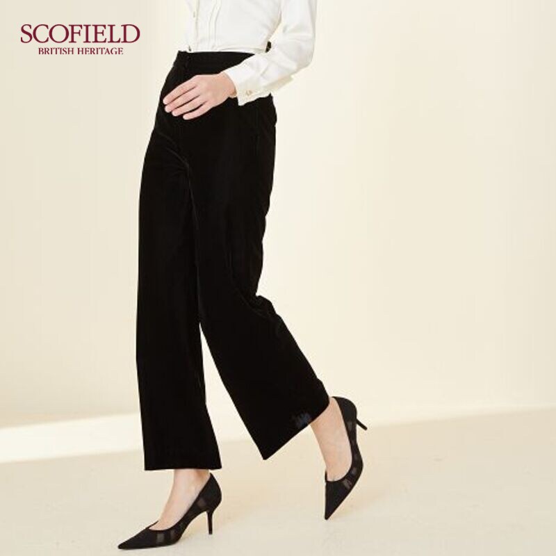 SCOFIELD Women's Clothing Winter Fasted Silk Suede Straight Cylinder Wide Leg Commute Fashion Brief Western Dress Pants Mall Cots