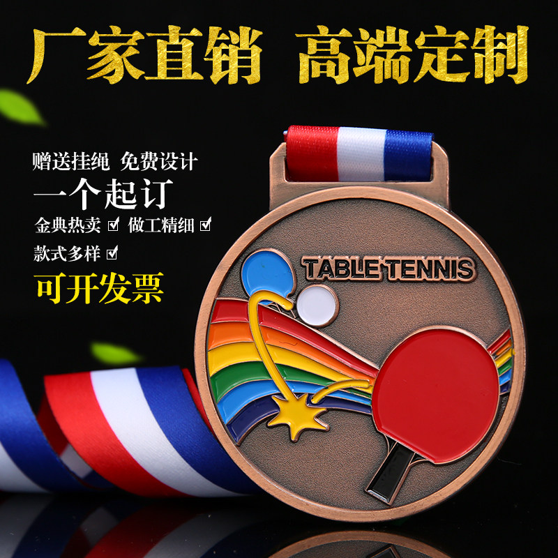 Table tennis medal customized to make metal listing Honor Games champion gold foil gold and silver bronze trophy medal medal