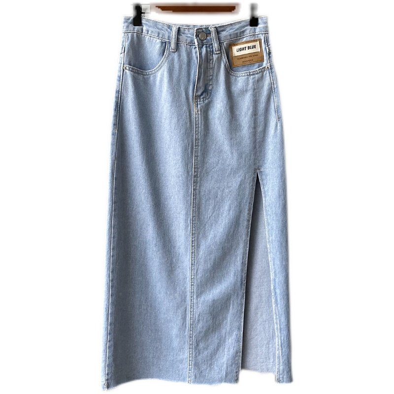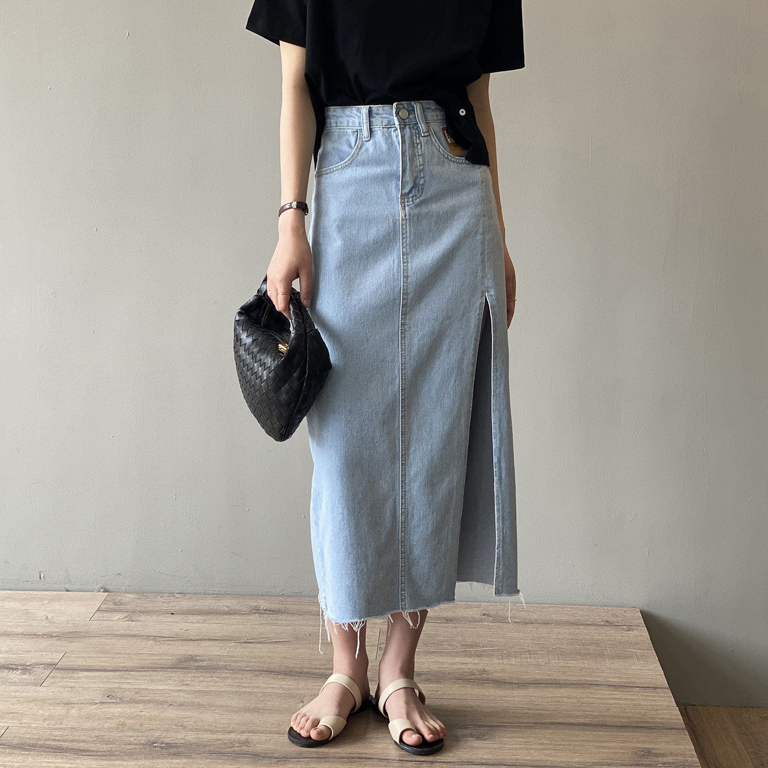 Japan SLY high waist side open fork denim half body dress Women summer 2021 new loose a long bag hip skirt