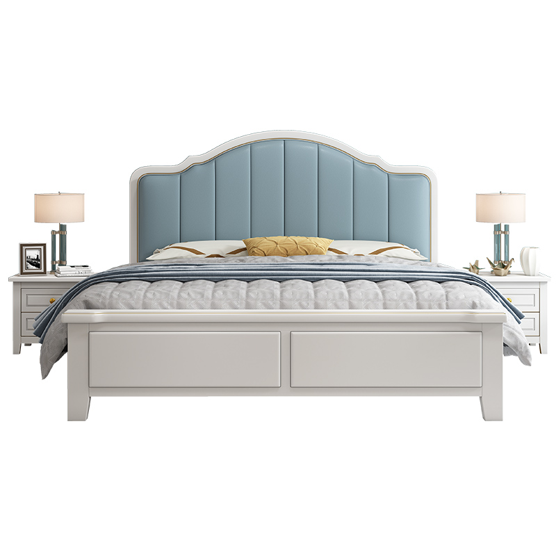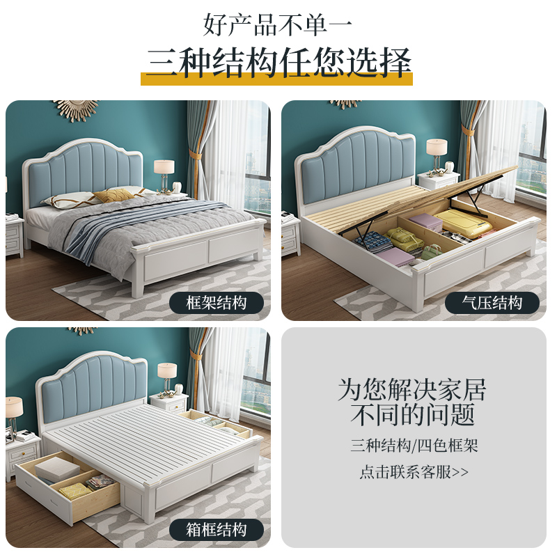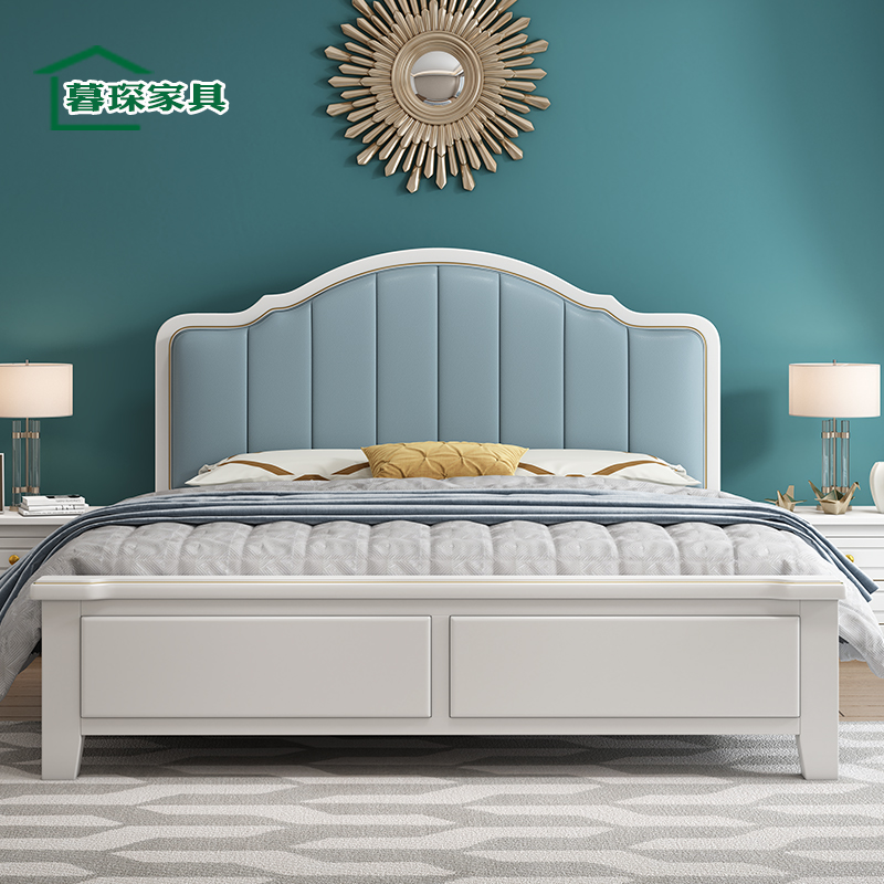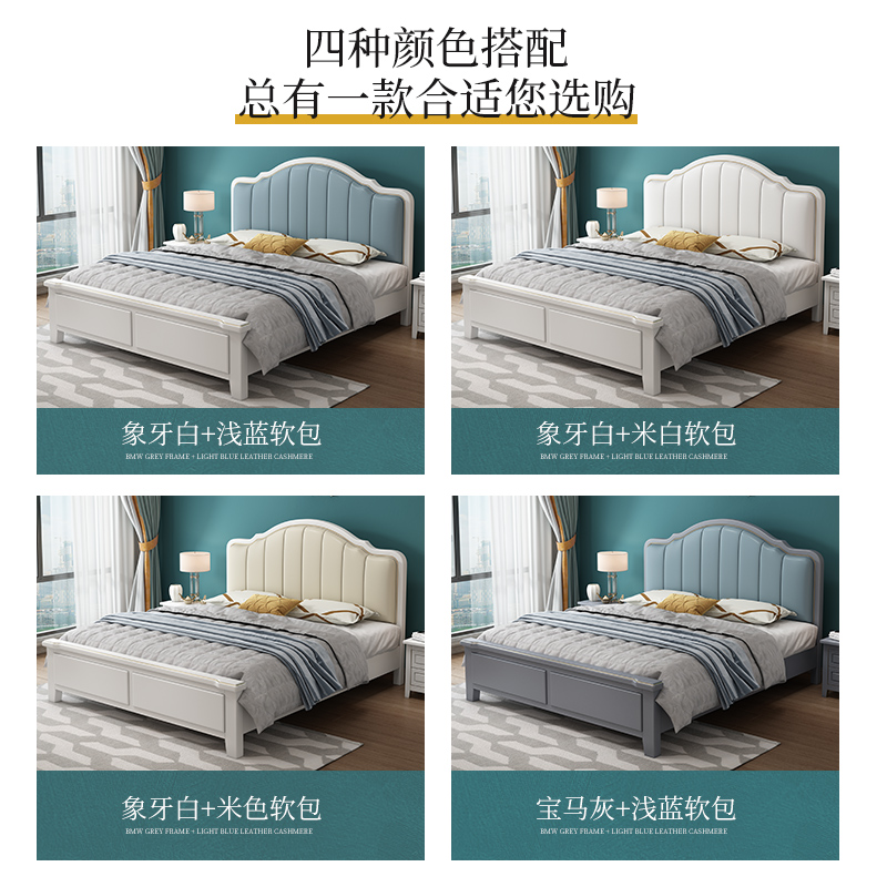 Light luxury all solid wood bed American modern minimalist 1 8 meters white single and double master bedroom wedding bed 1 5 soft bag princess bed