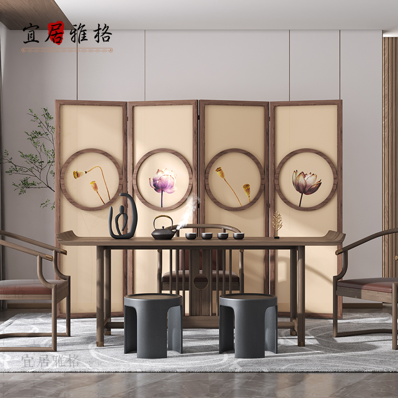 New Chinese Screen Partition Living Room Center of the Center Xuanguan Hotel Office Bedroom Shelter Tea Room Sky Round Local Fold Screen