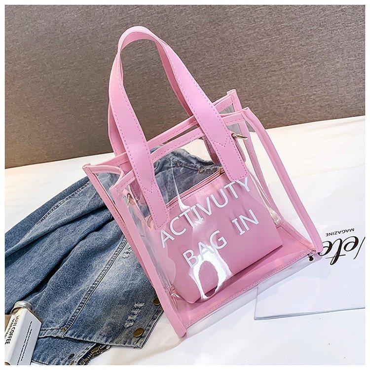 Large-capacity bag women's 2020 new summer small fresh transparent jelly bag all-match bucket bag messenger bag