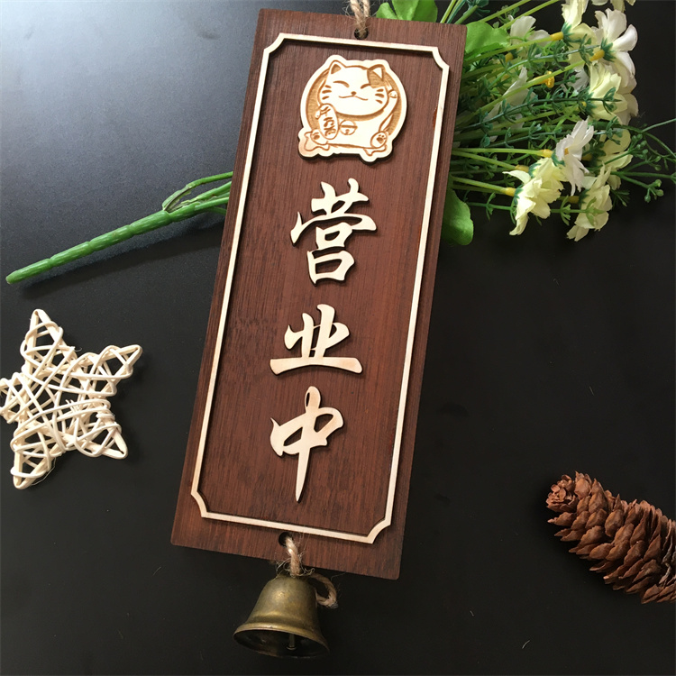 Wood is in business. Welcome to the listing. Creative personality business hours QR code double-sided door plate