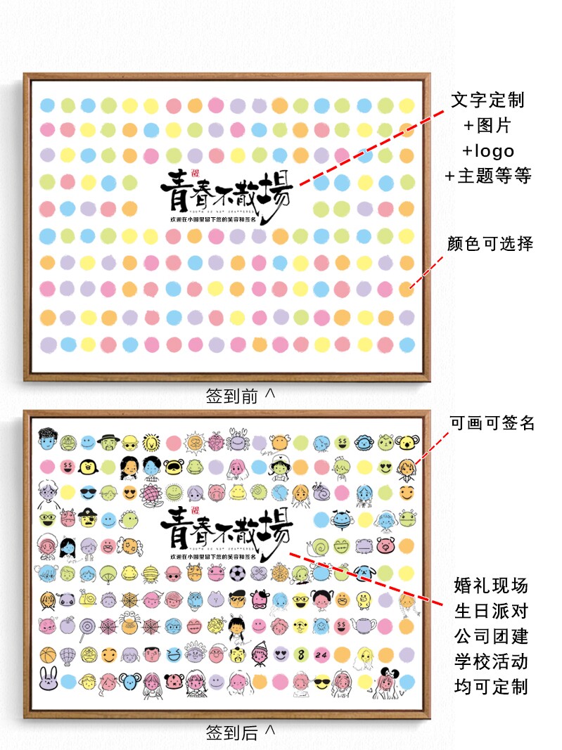 (wood grain frame) 30 * 40 suitable for 10-58 people (wood grain frame) 40 * 60 suitable for 60-126 people (wood grain frame) 50 * 70 suitable for 60-188 people (wood grain frame