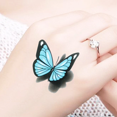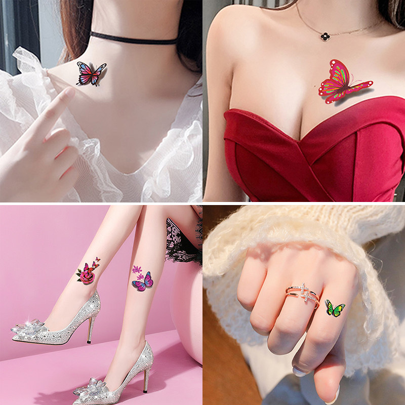 Color tattoo sticker Waterproof Lasting Fresh 3D Cubism Feeling Butterfly Feet Naked lock bones Inwind